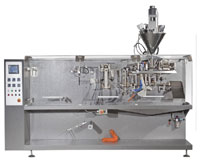 旋轉(zhuǎn)式給袋式自動(dòng)包裝機(jī)適用于平面袋,自立袋,拉鏈袋等各種形狀的熱封的復(fù)合袋.